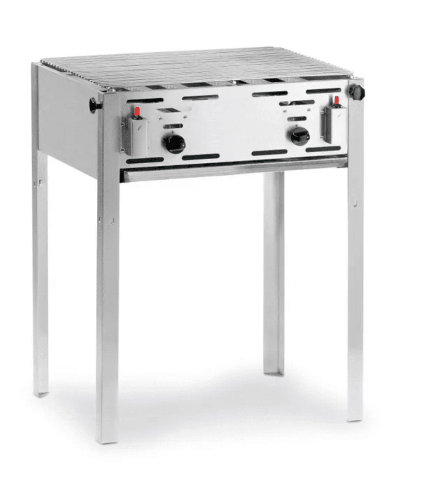 Met verchroomd rooster en geëmailleerde braadpan.