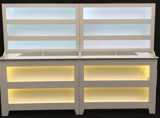 Bestaande uit 2 wandkasten en tap met ombouwIncl. biertap met koolzuur (bij afname bier) en koelingenTap met ombouw en wandkast ook los te huren