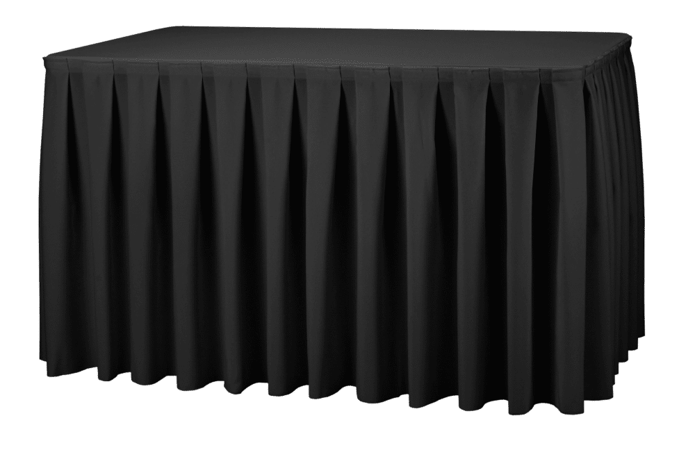 zwarte geplooide rok die in zijn geheel over de tafel heen gaat.