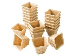 De vierkante bekers zijn ijsbekers gemaakt van wafel, krokant maar niet te hard