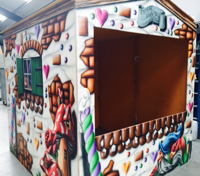 Snoephuisje uit het sprookje ‘Hans en Grietje’Uitgiftekraam t.b.v. popcorn & suikerspinAfmetingen (m) : 2.30 × 2.30