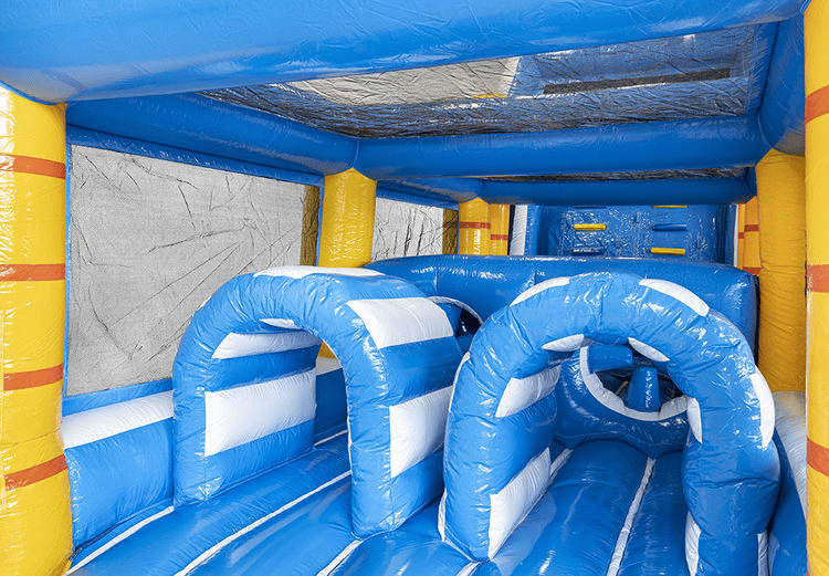 Deze stormbaan heeft een lengte van 13,5 meter en heeft verschillende leuke hindernissen.