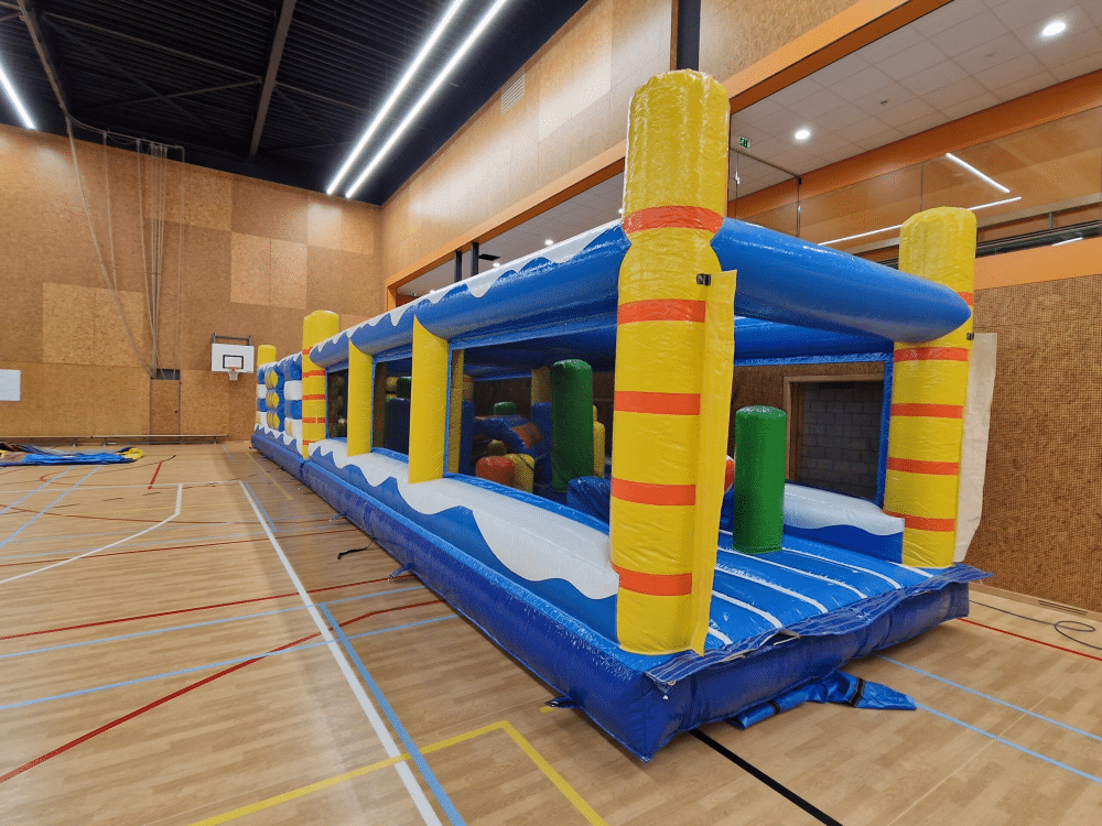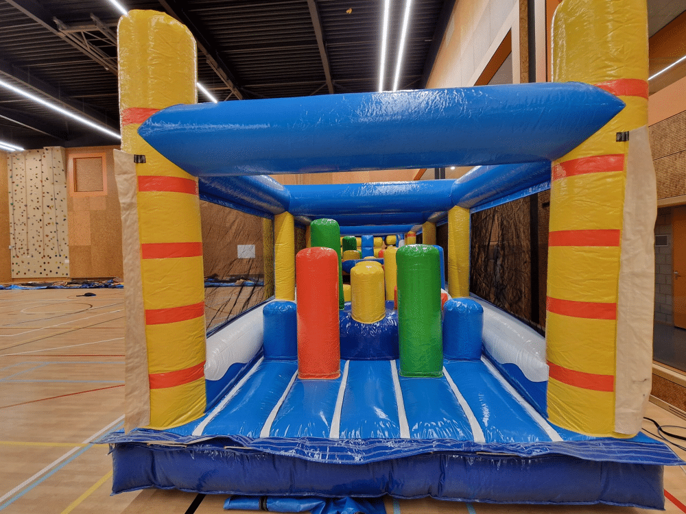 Ideaal voor in een gymzaal waar je geen hoge stormbaan kwijt kunt, en je kunt ze ook los van elkaar neerzetten! Wat een vette attractie is dit.