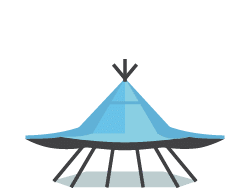 De Stratus 72 is de meest flexibele Nordic Tipi: eindeloos koppelbaar tot elk gewenst formaat, of het nu voor een bruiloft, bedrijfsfeest of festival is. De zijwanden van deze Zweedse tent kunnen geheel of gedeeltelijk worden opengeklapt, waardoor de tent eruit ziet als een grote hoed.
